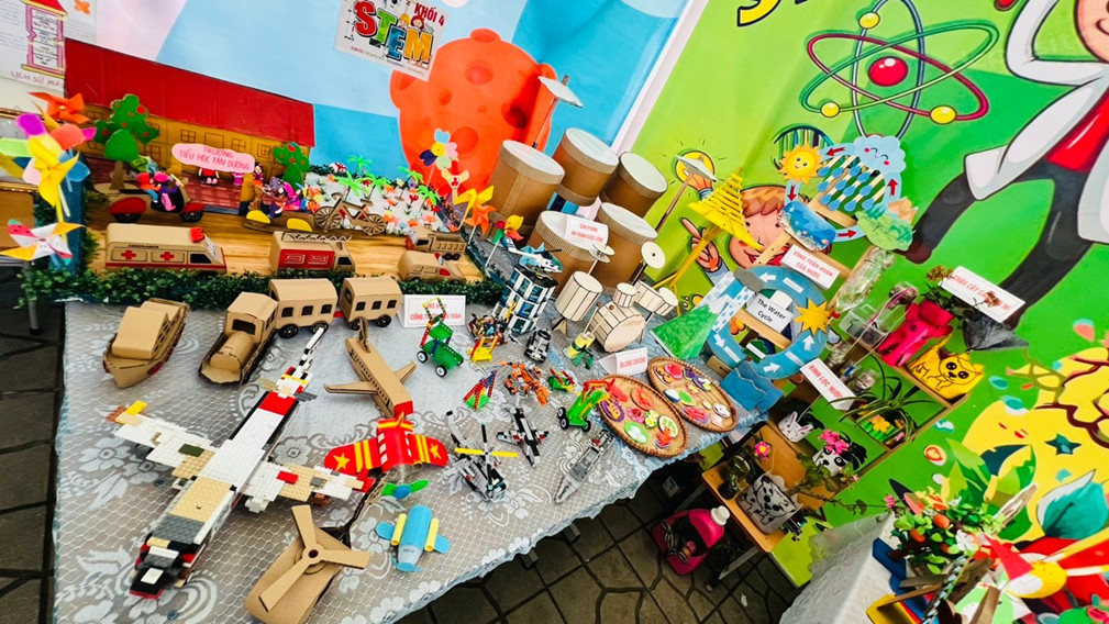 Tham gia ngày hội, mỗi khối lớp sẽ mang đến 1 gian hàng trưng bày các sản phẩm STEM tiêu biểu do học sinh, phụ huynh và giáo viên của trường làm, có nhiều sản phẩm sáng tạo và độc đáo với nhiều dấu ấn khoa học. Những sản phẩm được tạo nên chủ yếu từ các nguyên liệu tái chế, vỏ chai nhựa, đồ dùng đã qua sử dụng thân thiện với môi trường, an toàn với người sử dụng, có ứng dụng trong thực tiễn cuộc sống và học tập. Đã có gần 100 sản phẩm, mỗi sản phẩm STEM đều mang ý tưởng sáng tạo có tính ứng dụng cao, gần gũi với cuộc sống. Sản phẩm STEM thể hiện niềm say mê của học sinh với các trải nghiệm nghiên cứu khoa học, ứng dụng kiến thức trên sách vở vào thực tiễn. Đây là hoạt động rất bổ ích hỗ trợ cho học sinh, giáo viên và phụ huynh trong việc giáo dục, trang bị kiến thức và kỹ năng sống để các em có thể phát triển ý tưởng sáng tạo trong tương lai.