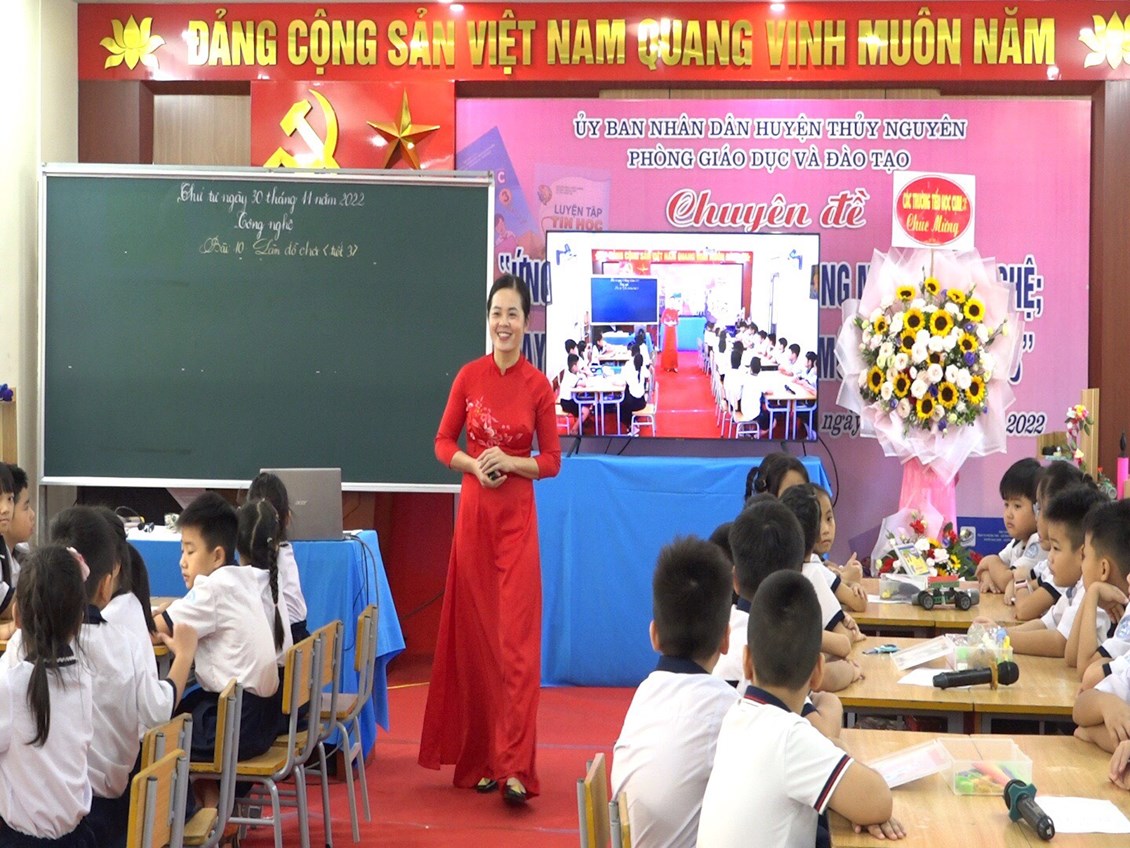 Về dự và chỉ đạo chuyên đề cấp Huyện có các đồng chí lãnh đạo của Phòng GD&ĐT huyện Thủy Nguyên cùng toàn thể các đồng chí cán bộ quản lí, khối trưởng khối 3, giáo viên dạy Tin học của các trường Tiểu học trong toàn huyện.