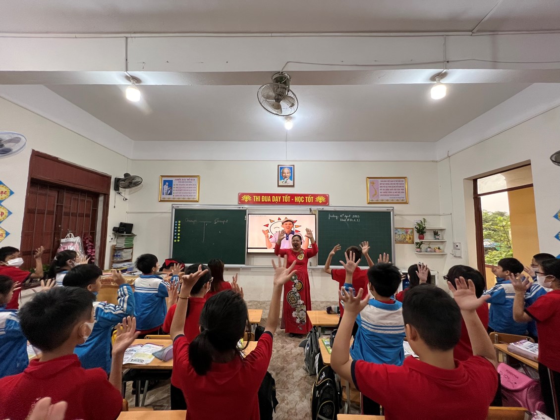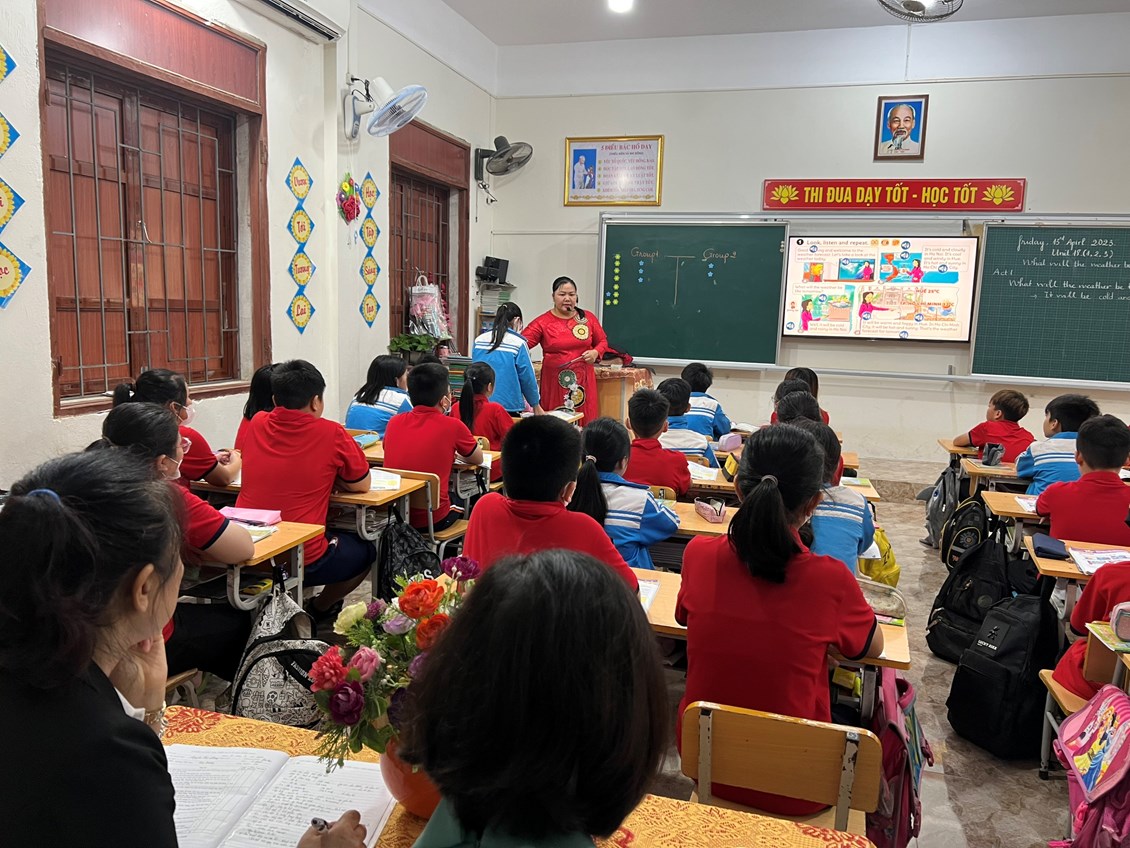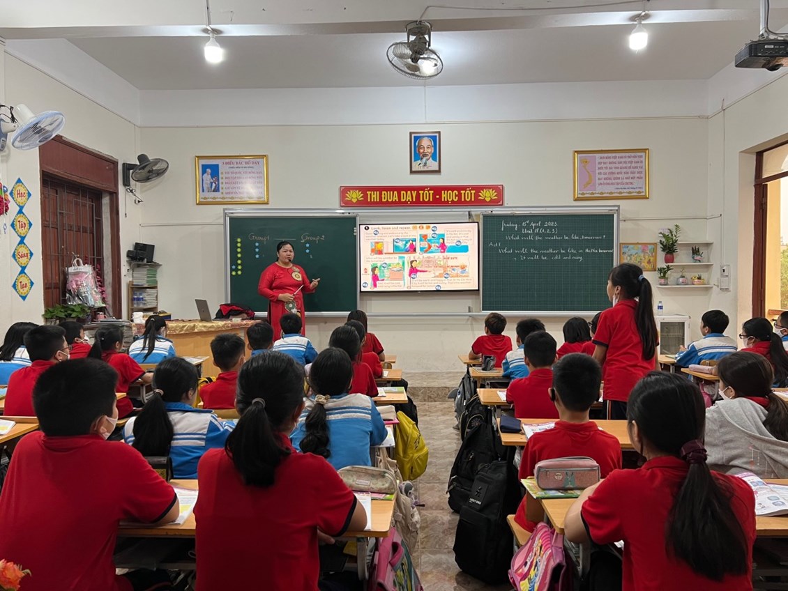 Trong tiết dạy, cô trò tương tác nhịp nhàng, học sinh được thực hành luyện nói về chủ đề thời tiết giúp các em mạnh dạn, tự tin, phát triển kĩ năng nói. Bên cạnh đó giáo viên chú trọng sửa phát âm và ngữ điệu nói Tiếng Anh cho học sinh một cách triệt để. Học sinh không chỉ được luyện nói với cô, với các bạn mà còn được thử sức trong vai trò làm biên tập viên cho bản tin dự báo thời tiết.
