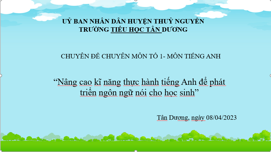 Thực hiện kế hoạch chuyên môn tháng 4 của nhà trường, ngày 08/04/2023, nhóm Tiếng Anh của tổ chuyên môn 1 đã tổ chức thành công chuyên đề “Nâng cao kĩ năng thực hành để phát triển ngôn ngữ nói cho học sinh trong giờ học tiếng Anh lớp 5” với bài: Unit 18: What will the weather like tomorrow?- Lesson 1- Part 1, 2, 3 do cô giáo Nguyễn Thị Nhung thể hiện.