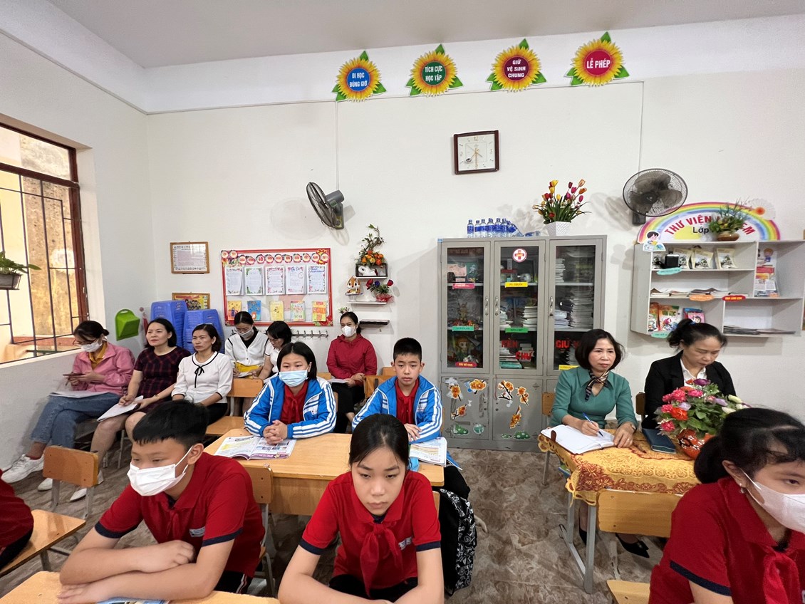 Về dự giờ và chỉ đạo cho buổi sinh hoạt chuyên môn có đồng chí Nguyễn Thanh Tâm – PHT nhà trường, cùng các đồng chí là giáo viên tổ 1 và giáo viên nhóm tiếng Anh.
