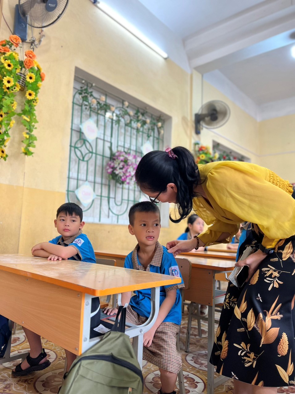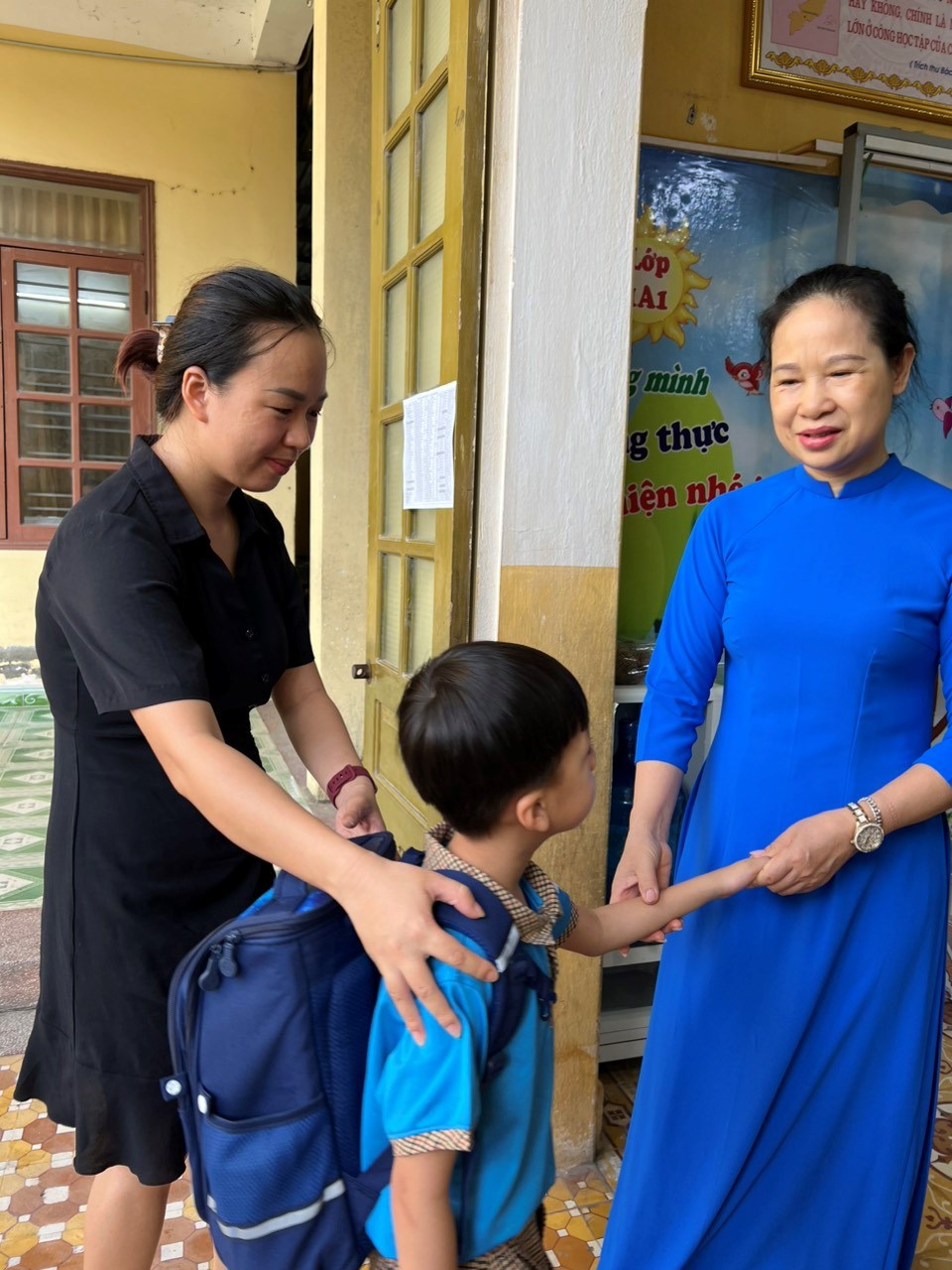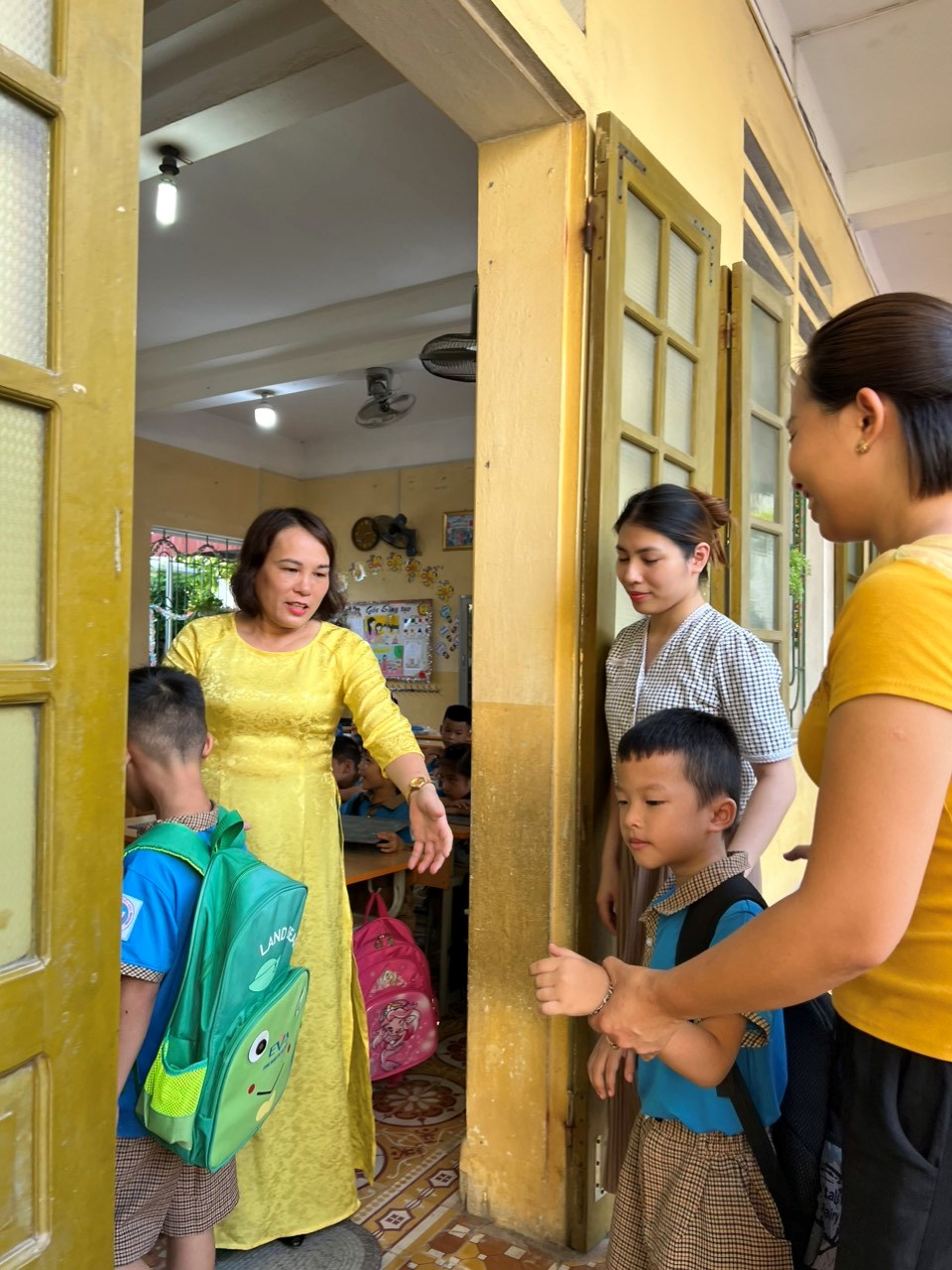 Cũng trong buổi tựu trường, các cô trong Ban giám hiệu nhà trường đã đến thăm lớp và gửi những lời chúc tốt đẹp nhất đến cô giáo chủ nhiệm cùng các em học sinh.