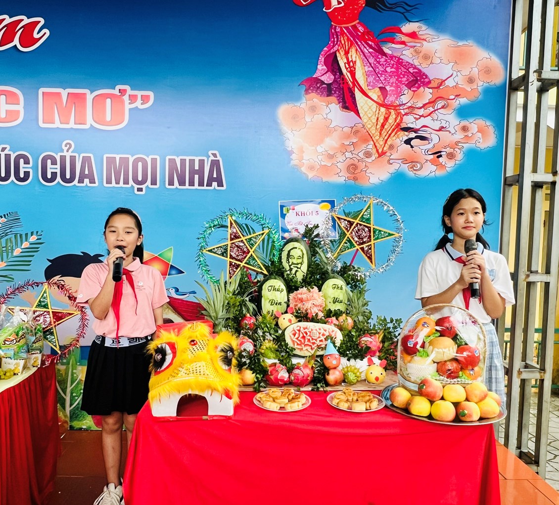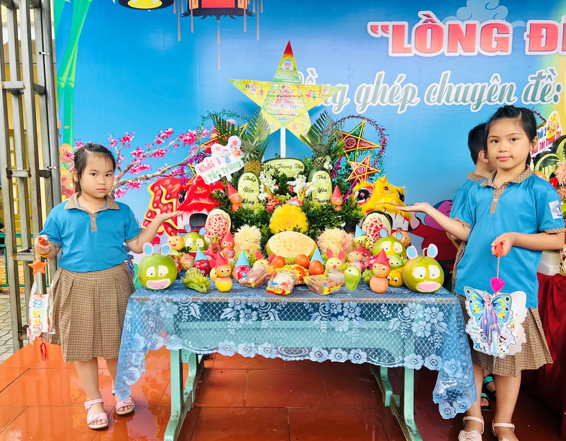 Thi bày mâm ngũ quả là một trong những hoạt động thường niên vui Tết trung thu, thu hút 100% cán bộ, giáo viên, nhân viên và học sinh toàn trường tham gia. Đặc biệt với sự đồng lòng, sự quan tâm sâu sắc, sự tham gia nhiệt tình, chu đáo của các Ban đại diện cha mẹ học sinh các lớp đã tạo không khí vui tươi phấn khởi, đảm bảo an toàn, bổ ích, tiết kiệm, hiệu quả, không ảnh hưởng đến trật tự xã hội, an toàn giao thông và học tập của học sinh.