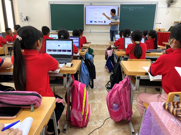 Với thế mạnh về CNTT, thầy giáo đã nghiên cứu và thiết kế các trò chơi đầy sáng tạo, thu hút các em học sinh hào hứng tham gia tạo nên không khí thi đua học tập sôi nổi trong giờ học.