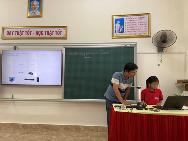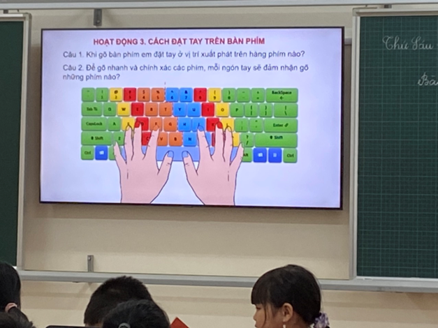 Thực hiện minh họa cho chuyên đề là thầy giáo Bùi Quang Hiển cùng các em học sinh lớp 3A2 qua bài 5: Sử dụng bàn phím (Tiết 1), môn Tin học lớp 3. Tiết học diễn ra sôi nổi, đầy hào hứng với sự dẫn dắt khéo léo của thầy và các hoạt động được thiết kế phù hợp, tạo hứng thú học tập cho học sinh. Tiết học là một món quà đặc biệt mà thầy gửi tới các đồng chí cán bộ Quản lý, giáo viên và các em học sinh nữ nhân ngày 20/10.