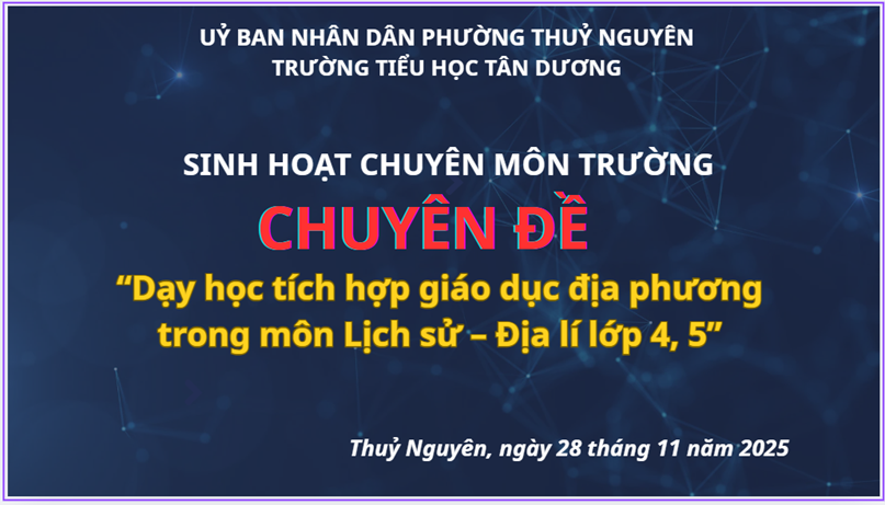 Thực hiện kế hoạch sinh hoạt chuyên môn tháng 11, chiều ngày 28/11/2025, trường Tiểu học Tân Dương tổ chức buổi sinh hoạt chuyên đề “Dạy học tích hợp giáo dục địa phương trong môn lịch sử – địa lí lớp 4, 5” với tiết dạy minh họa môn Lịch sử – Địa lí lớp 5, bài “Khởi nghĩa Lam Sơn và Triều Hậu Lê” (Tiết 3) do cô giáo Bùi Thị Phương Thảo và học sinh lớp 5A4 thực hiện.