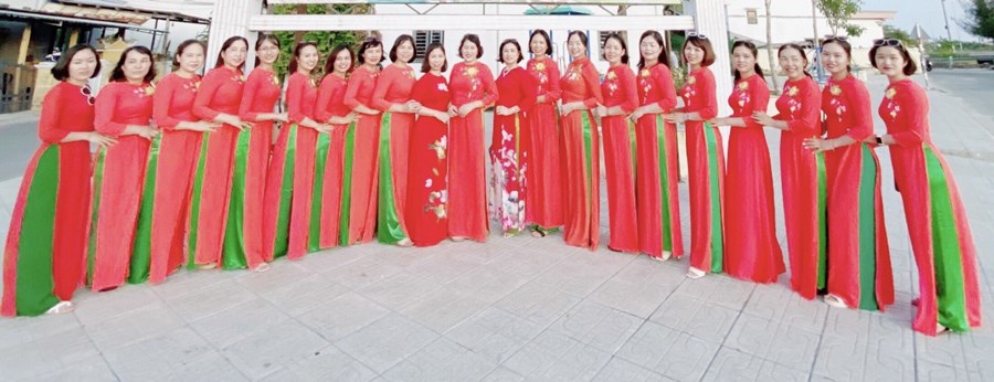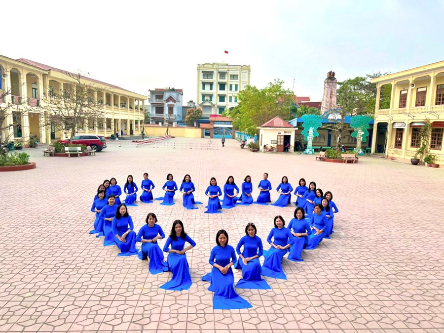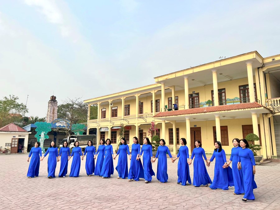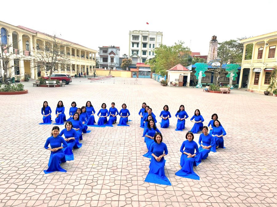 Trong tà áo dài thướt tha, cán bộ, giáo viên, nhân viên trường Tiểu học Tân Dương đã lan tỏa vẻ đẹp của Áo dài Việt và nét đẹp duyên dáng thanh lịch của phụ nữ thành phố Hoa phượng đỏ.