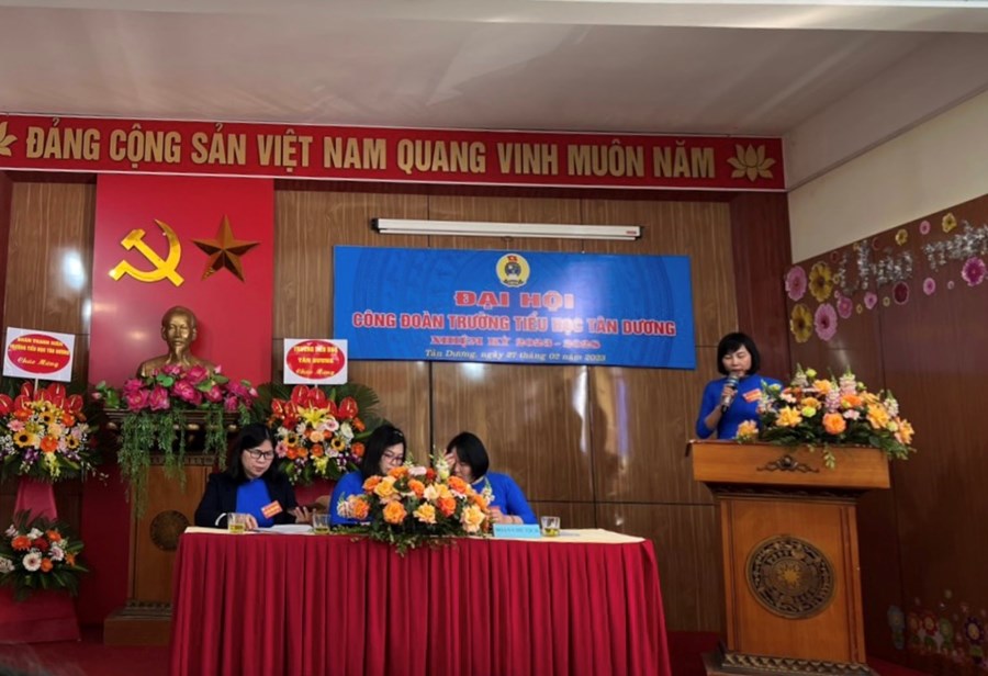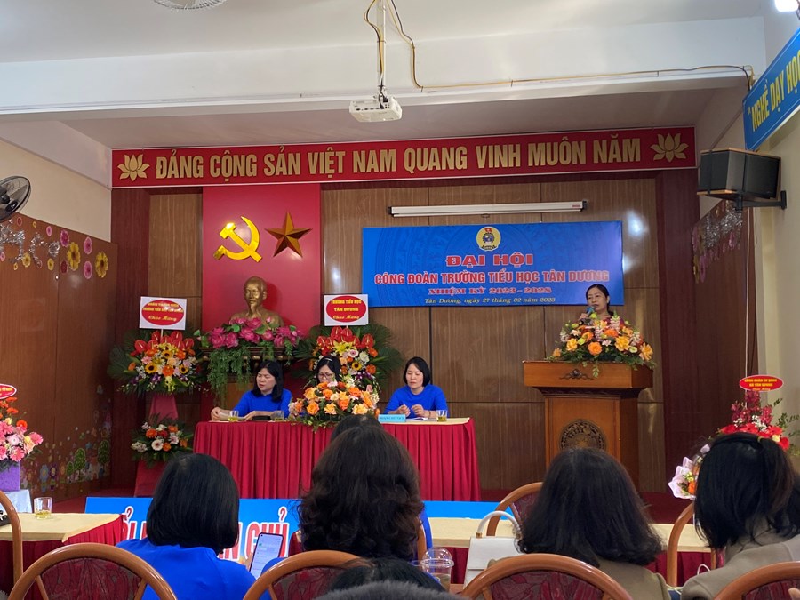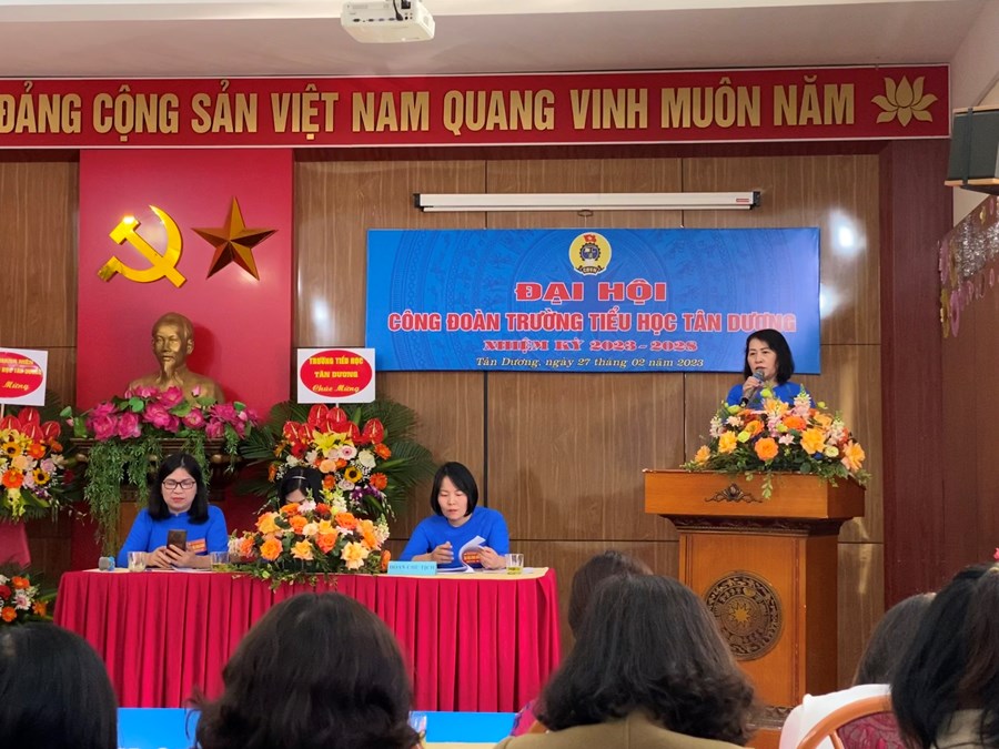 Thực hiện Điều lệ XII Công đoàn Việt Nam, Hướng dẫn số 03/HD-TLĐ ngày 20/02/2020 của Đoàn Chủ tịch Tổng Liên đoàn Lao động Việt Nam về thi hành Điều lệ Công đoàn Việt Nam; Kế hoạch số 18/KH-LĐLĐ ngày 18/5/2022 của Ban Thường vụ LĐLĐ huyện về tổ chức đại hội công đoàn các cấp tiến tới Đại hội XI Công đoàn huyện, Đại hội XV Công đoàn thành phố, sáng ngày 27/2/2023, Công đoàn Trường Tiểu học Tân Dương đã tổ chức Đại hội Công đoàn, nhiệm kỳ 2023-2028.