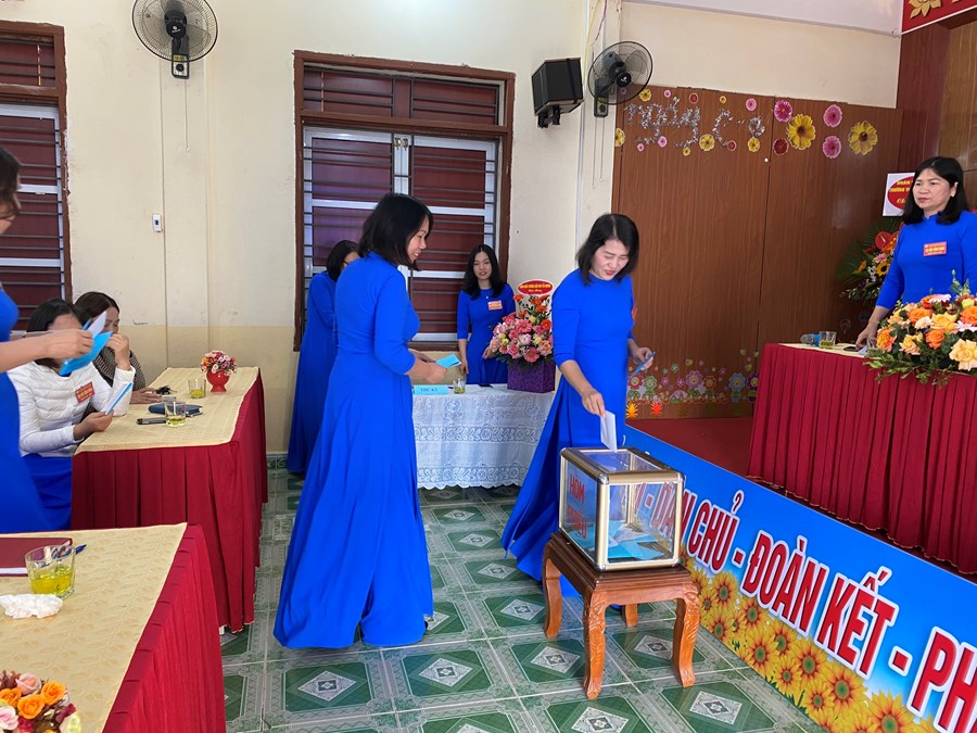 Sau thời gian làm việc khẩn trương, nghiêm túc với tinh thần Đổi mới - Dân chủ - Đoàn kết - Phát triển, Đại hội Công đoàn Trường Tiểu học Tân Dương đã bầu được 5 đồng chí vào Ban chấp hành Công đoàn khóa nới, nhiệm kỳ 2023-2028 là các đồng chí: Đồng Thị Phương, Vũ Thị Lương, Trần Thị Thơ, Bùi Thị Phương Thảo, Nguyễn Thị Giang và đồng chí Đồng Thị Phương vinh dự được Đại hội bầu đi dự Đại hội Công đoàn huyện trong thời gian tới./.