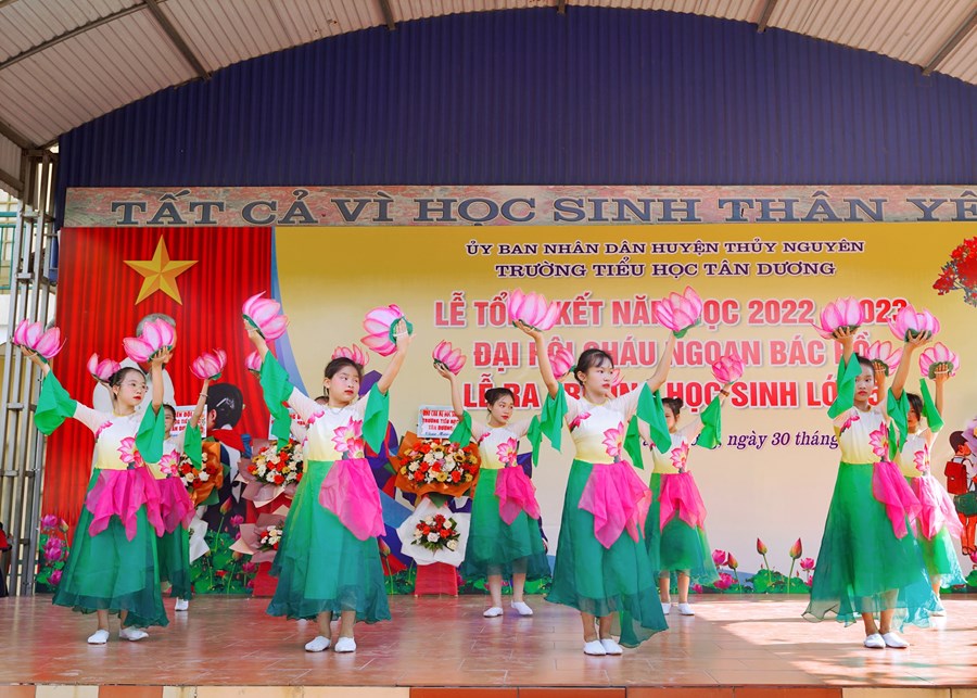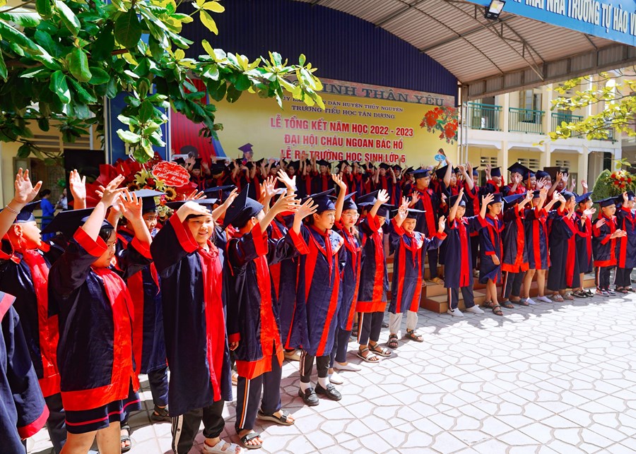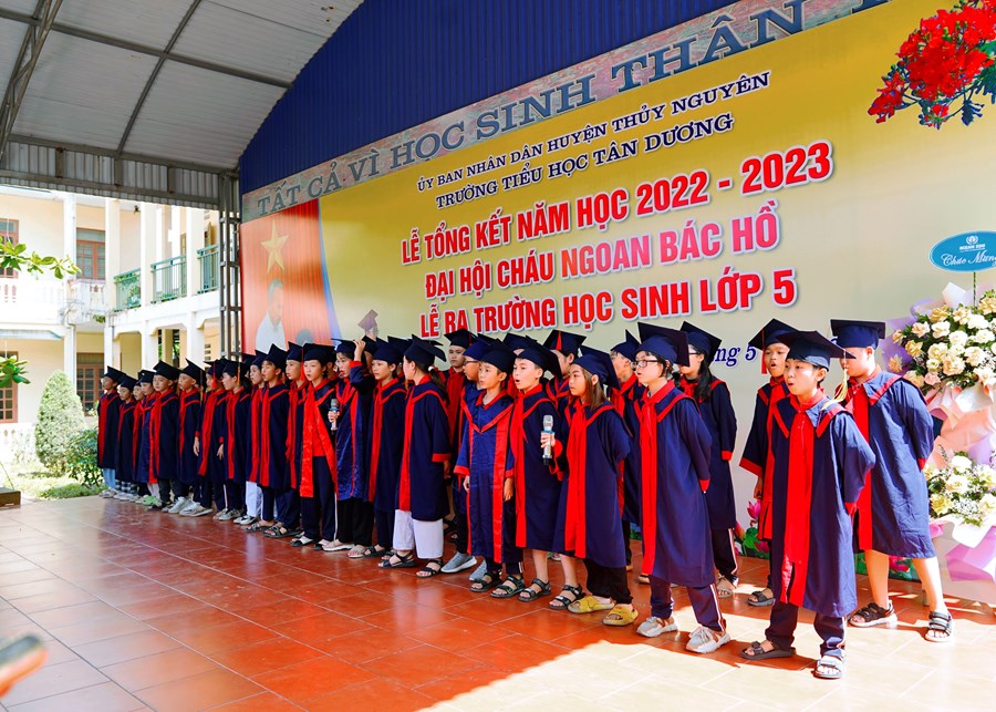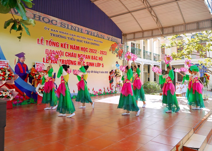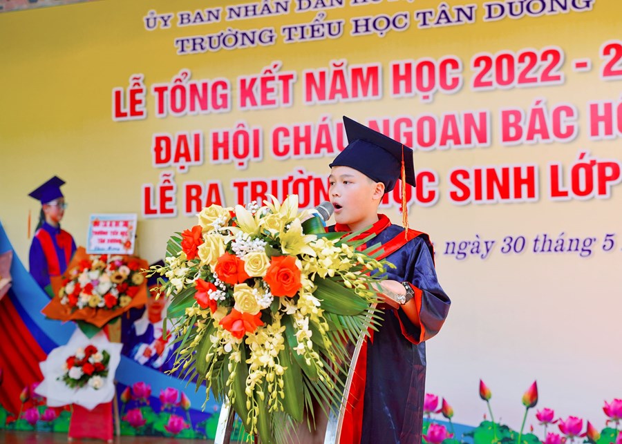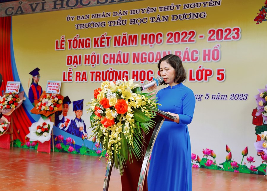 Thời khắc chia tay đã đến, quãng thời gian 5 năm ấy không hẳn là dài nhưng cũng đã đủ để biến tất cả nơi đây thành kỉ niệm, thành yêu thương… Nơi đây đã dìu dắt những bước đi chập chững đầu tiên của các em để hôm nay các em thực sự đã là những cánh chim đầu đàn thì cũng là lúc các em lại chuẩn bị hành trang bước vào bậc học mới. Chúc các em hãy luôn phát huy những gì tốt đẹp nhất mà các em tiếp thu được dưới mái trường này, xứng đáng là con ngoan trò giỏi cháu Bác Hồ kính yêu.
