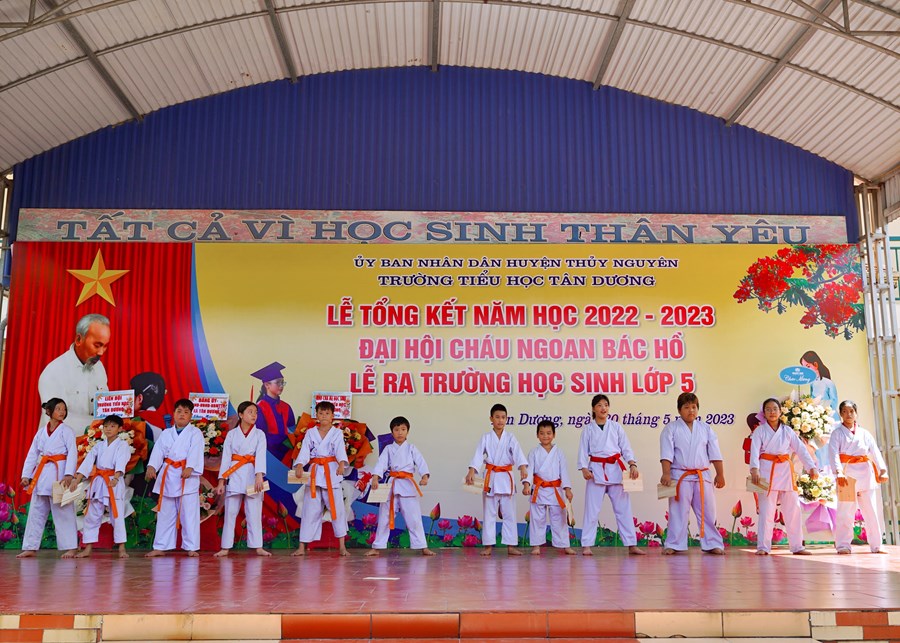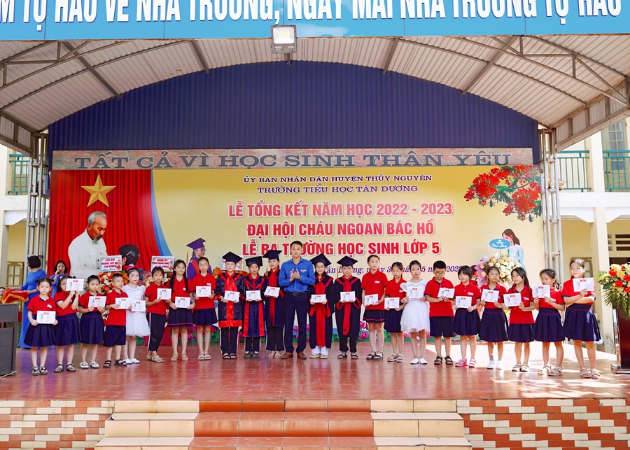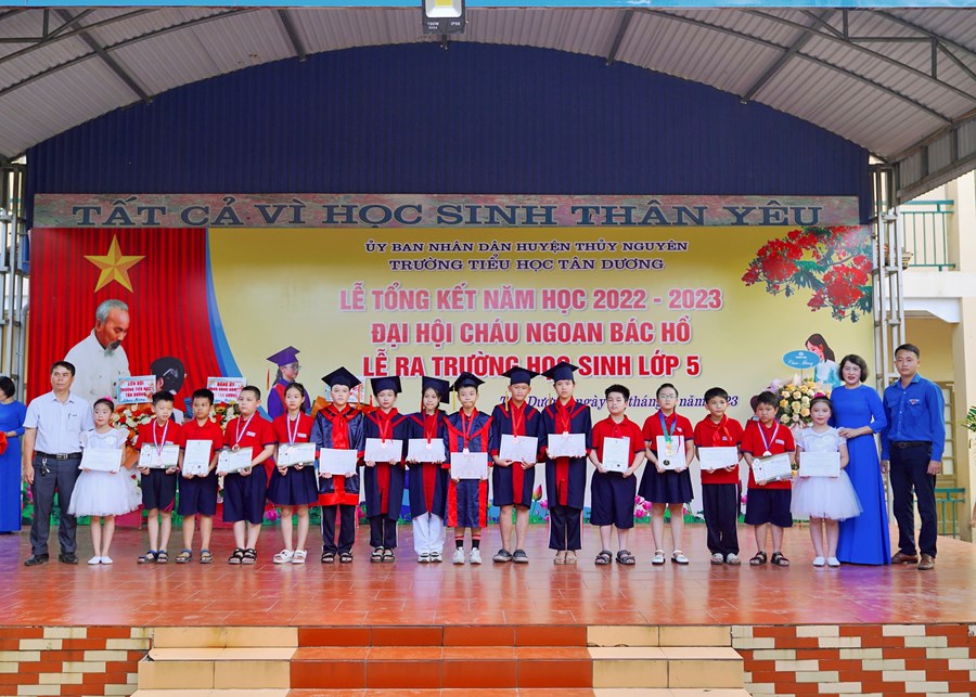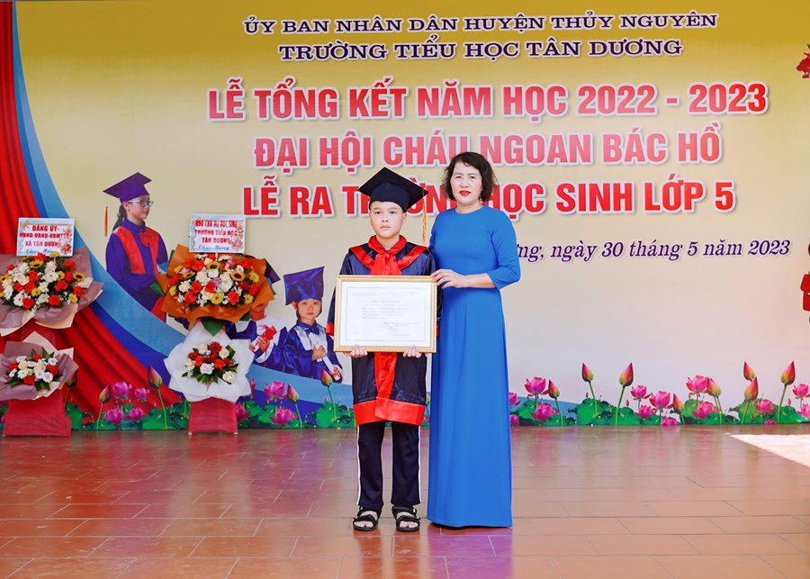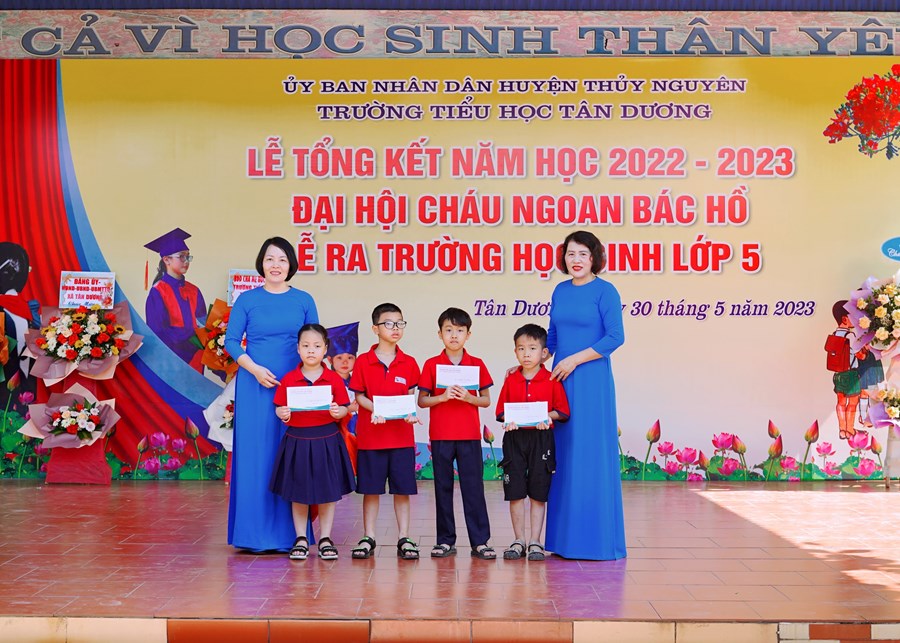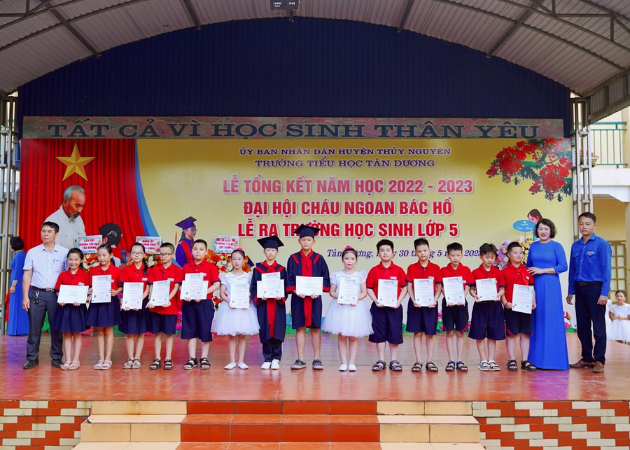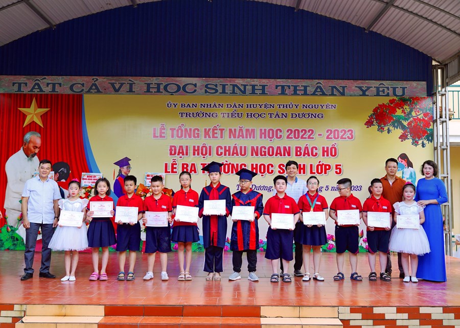 Buổi lễ tổng kết năm học đã diễn ra trong không khí trang trọng và ấm áp, mang lại nhiều cung bậc cảm xúc. Nhà trường đã trao giấy chứng nhận hoàn thành chương trình Tiểu học cho 196 em học sinh lớp 5 niên khóa 2018 – 2023.