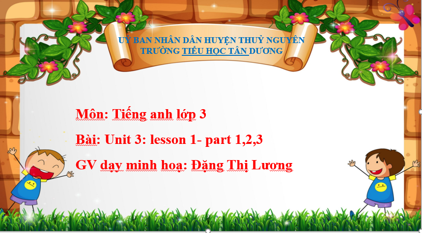 Dạy minh hoạ cho chuyên đề là đồng chi Đặng Thị Lương – GV Giáo viên Tiếng anh với bài: Unit 3, Lesson 1: Part 1,2,3.