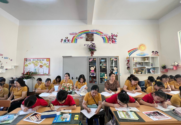(Đồng chí Nguyễn Thanh Tâm – Phó hiệu trưởng cùng toàn thể các đồng chí giáo viên trong trường tham dự chuyên đề)