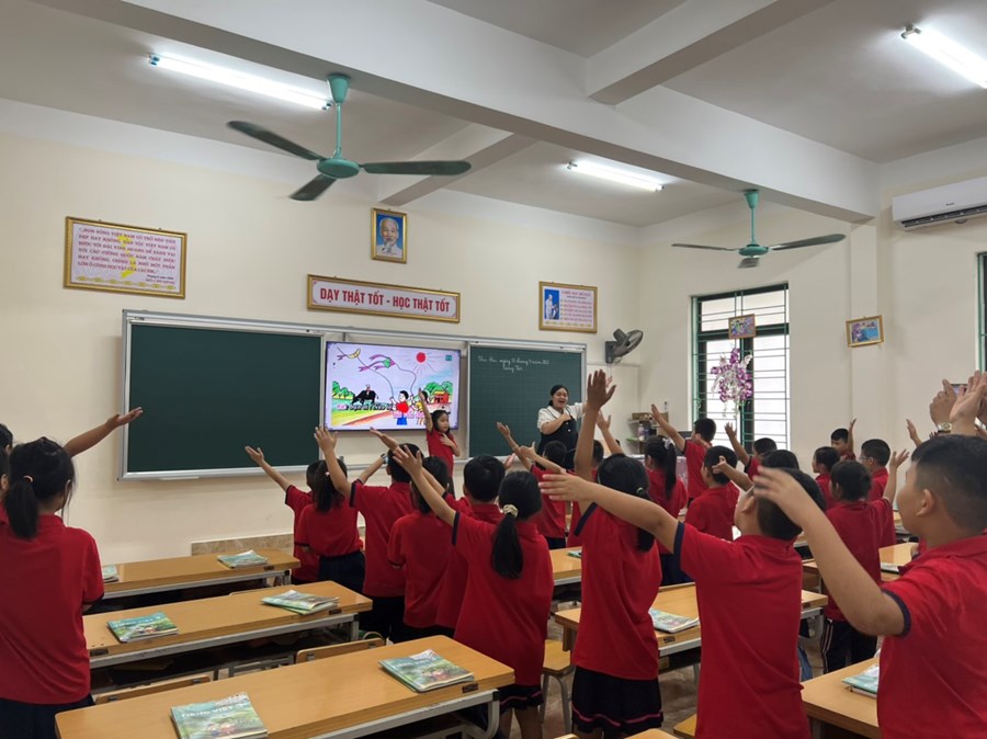 Với hoạt động đầu tiên là khởi động, học sinh hát và vận động theo bài hát Em yêu mùa hè, giáo viên không chỉ đem đến không khí vui vẻ cho lớp học mà còn mang đến cho các em sự hào hứng, tích cực , … Và cũng thông qua hoạt động khởi động các em còn được nói lên những tình cảm, cảm xúc của bản thân, từ đó giáo viên dẫn dắt các em vào bài học một cách nhẹ nhàng, cuốn hút.