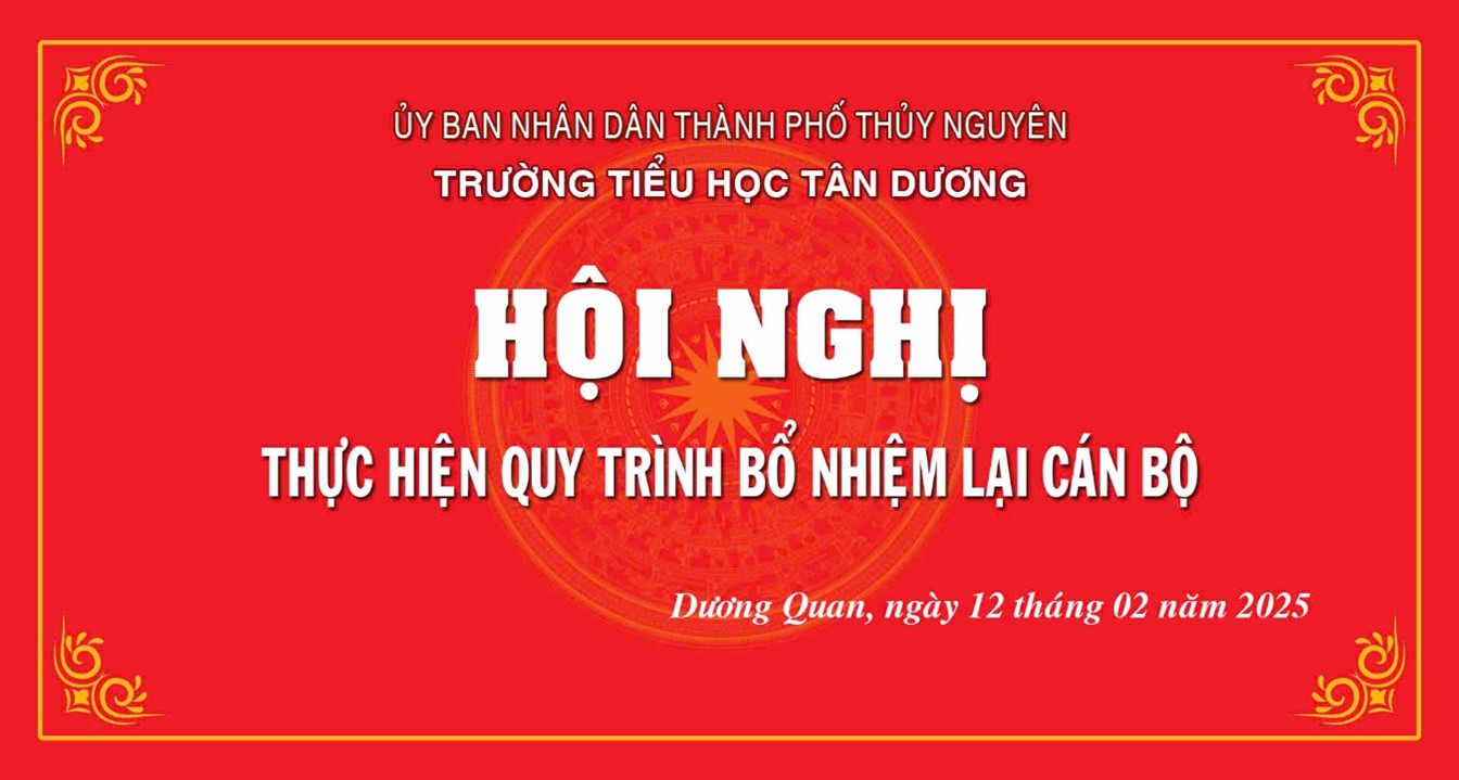 Theo thông báo của Thành ủy Thủy Nguyên, chiều ngày 12/02/2025 trường Tiểu học Tân Dương đã tổ chức Hội nghị thực hiện quy trình bổ nhiệm lại chức vụ Phó hiệu trưởng đối với đồng chí Nguyễn Thanh Tâm.