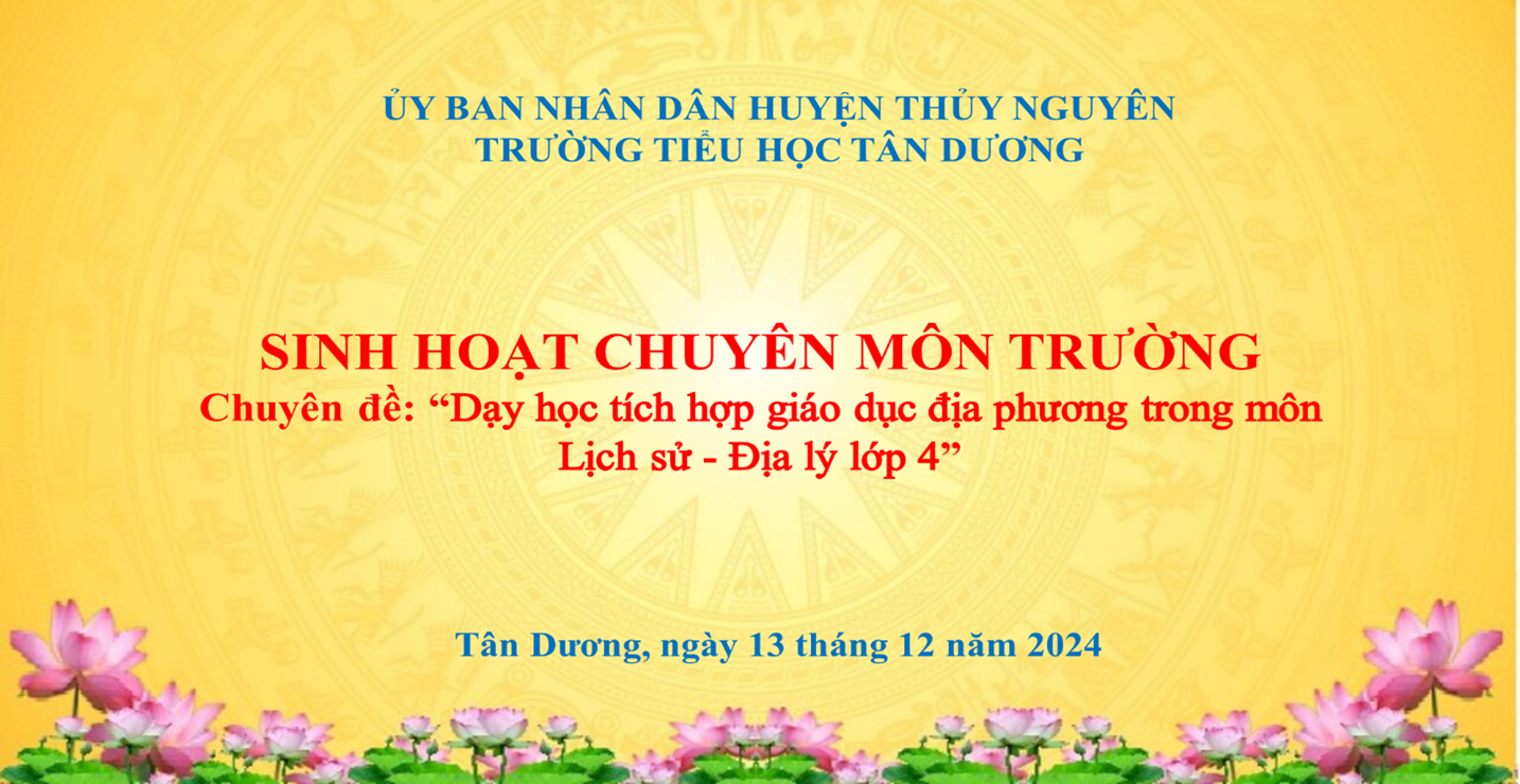 Thực hiện kế hoạch chuyên môn tháng 12 của nhà trường, thứ Sáu ngày 13/12/2024, Trường Tiểu học Tân Dương tổ chức chuyên đề: “Dạy học tích hợp nội dung Giáo dục địa phương” vào dạy môn Lịch sử và Địa lý lớp 4, đáp ứng chương trình GDPT 2018.